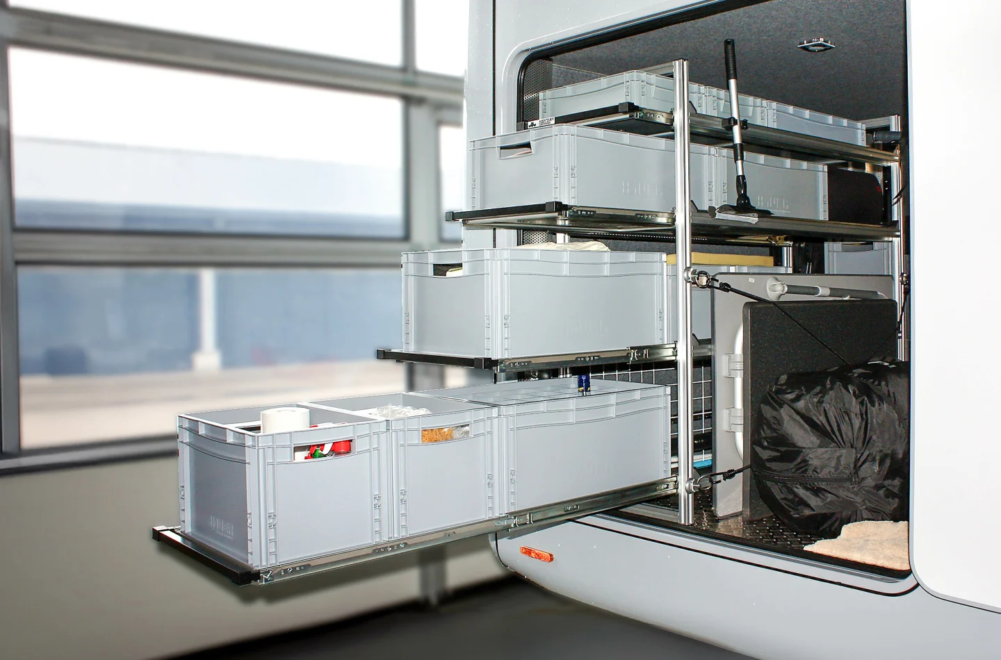 So sind Stauraumsysteme bereits ab ca. 10 kg Gesamtgewicht möglich.