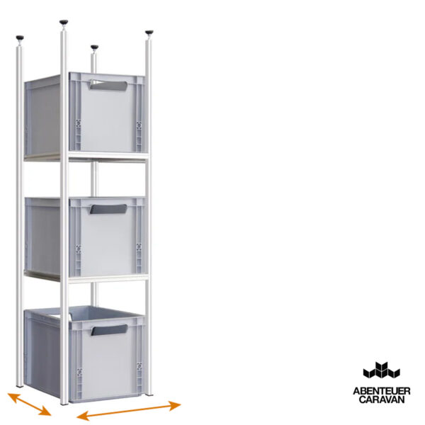 Stufenlose Evolution Ihres Stauraums: Ihre Bedürfnisse ändern sich, Ihr Regalsystem zieht mit. Die Regalrahmen sind in der Höhe stufenlos einstellbar, was Ihnen eine lebenslange Flexibilität garantiert. Sie können die Fachabstände jederzeit ohne Spezialwerkzeug an neue Ausrüstungsgegenstände anpassen. So bleibt Ihr System auch nach Jahren und bei einem Wechsel Ihres Equipments immer auf dem neuesten Stand der Ergonomie.