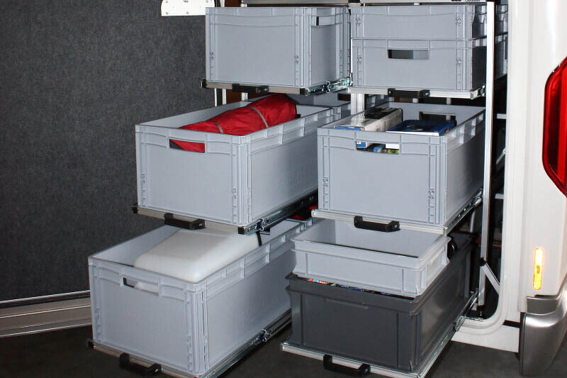 Unsere Regalsysteme sind genau auf Sie und Ihr Fahrzeug abgestimmt. Ob Halterungen, Schubladen oder Sonderbauten – selbst für den Besen findet sich bei uns der perfekte Platz.